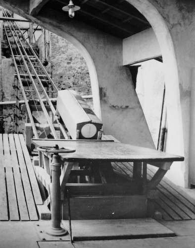 [ Given the danger of the process (and an easily boycotted one, simply inserting extraneous objects in the paste, producing sparks...) in 1952 a remote control system was introduced. It consisted in a televion control, and represented a great technical innovation in those times. After loading the mixers, the workers left the site and monitored the process through four monitors.