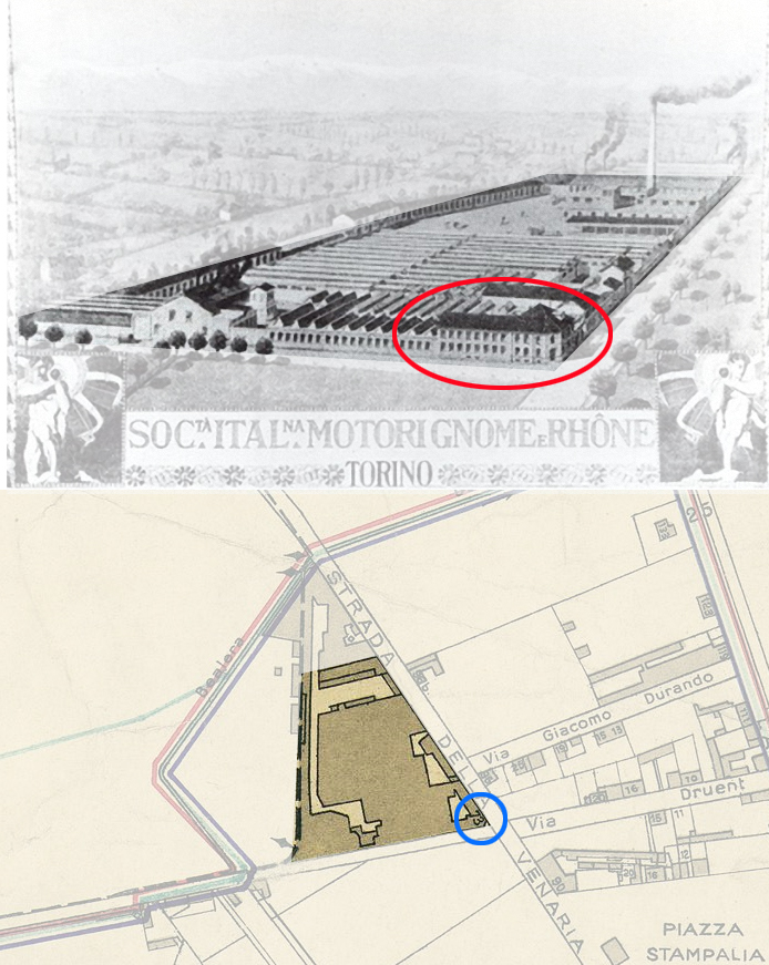 Era stata una delle prime fabbriche di motori aeronautici d'Italia, si chiamava SIMGER (Società Italiana Motori Gnome e Rhone). In seguito ad un fallimento è stata poi acquistata dalla Diatto che ha usato poi gli stabilimenti per produrre auto. Sarebbe interessante localizzare questa immagine sulla attuale Via venaria