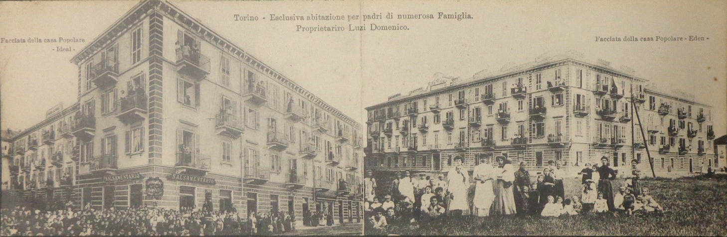 Barriera di Nizza: Via dell'Esposizione, oggi via Pio Foà, nell'isolato compreso tra via Menabrea, via Cellini e via Ormea. Spero che i bambini non fossero tutti dello stesso padre. ![]() ![]() Domenico Luzi fu un grande benefattore per il quartiere della Barriera di Nizza e ricevette nel corso degli anni numerosissime onoreficenze al merito. Qui un simpatico articolo dell'11 ottobre 1909 che parla dell'iniziativa rivolta ai padri di famiglia numerosa.