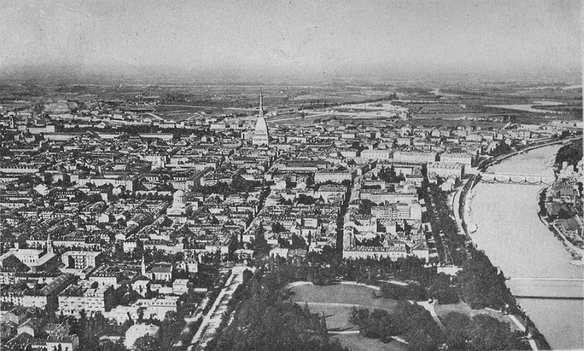 (A destra, su via Sacchi, si vede il casotto del capolinea dei "trenini" per Vinovo - Piobesi e Orbassano - Giaveno, demolito nel 1928 dopo la soppressione della linea per Vinovo e lo spostamento di quello per Orbassano). |