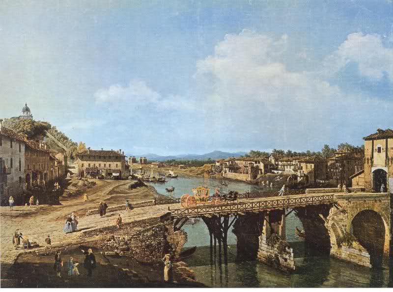 Il Bellotto nel quadro volle mettere in evidenza, in primo piano, le arcate lato collina andate distrutte nella piena del 1706, e sostituite con le passerelle in legno, tralasciando la parte rimanente del ponte, oltre il "castelletto" di guardia; osservando in dettaglio il ponte, si capisce sia perchè le "pearde" o punti d'imbarco erano due, a monte e a valle (le arcate erano molto strette e basse, una imbarcazione appena un po' larga e alta (per via del o degli alberi) avrebbe avuto problemi a passarvi sotto),sia perchè il ponte era così vulnerabile in caso di piene (le arcate strette, con l'accumulo dei detriti portati dalle acque, creavano un effetto diga che finiva per portare al crollo della struttura). Si dice che Napoleone Bonaparte in persona, di passaggio per Torino, avendo dovuto percorrere il ponte, avesse ordinato la costruzione di un nuovo manufatto con criteri più moderni, come poi avvenne.