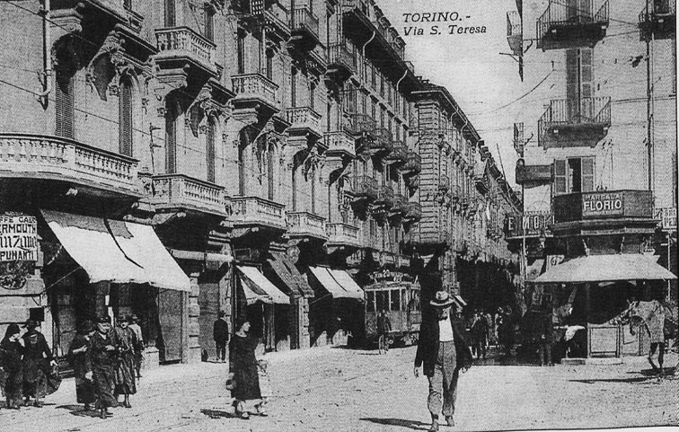Una foto da angolazione inedita dello sbocco di via Santa Teresa in piazza Solferino, risalente probabilmente a fine anni 20