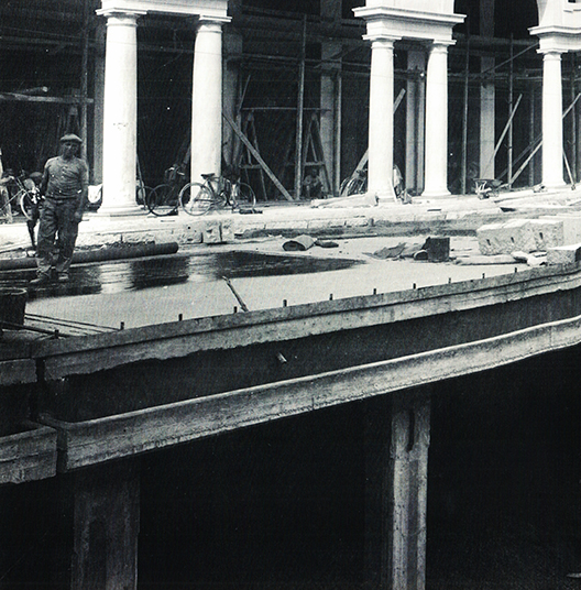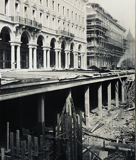 Su via Cavour si vedono ancora i binari percorsi dal tram 2 fino al 1936, spostato poi per il cantiere di via Roma in corso Vittorio. |