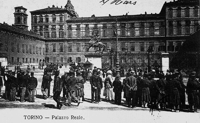 Notare come la piazzetta Reale fosse attraversata dalle auto per raggiungere piazza San Giovanni attraverso il sottopasso del Chiablese.