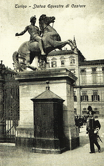 Ancora due foto delle garitte con guardia (e pare un cambio, con carabiniere "col pennacchio") all'ingresso della piazzetta Reale, risalenti a inizio 900