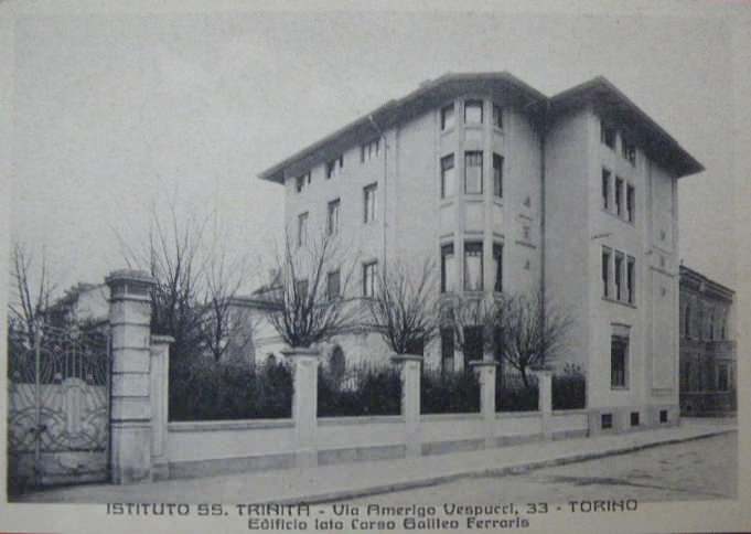 In primo piano sulla sinistra si vede la villa all'angolo di via Lamarmora con via Vespucci, tuttora esistente. Più dietro si vede il tracciato di corso Galileo Ferraris con le prime case non troppo alte. Una curiosità: all'angolo di corso Galileo Ferraris con via Vespucci si vede una casetta bassa a due piani con ampio giardino. Di lì a pochi anni sarebbe stata ulteriormente trasformata elevandosi di un piano e allargandosi verso via Vespucci. Ospitava l'Istituto Santissima Trinità. ![]() Qualcosa è rimasto della struttura di quell'edificio, ma è irriconoscibile: https:[email protected]..7i13312!8i6656