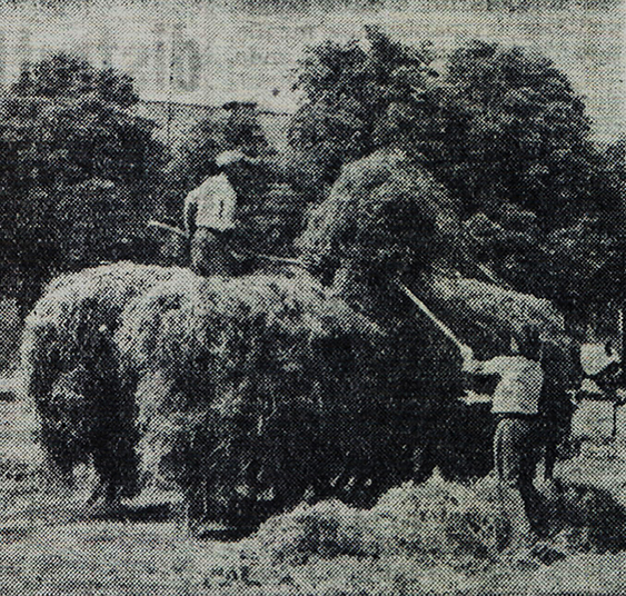 e, sempre nei prati del Valentino, la fienagione questa poi non la capisco molto: erano forse state impiantate stalle bovine e/o ovine in città? Vabbè, c'erano anche le conigliere; una conigliera gigante era stata creata sotto la passerella tranviaria di Porta Susa, chiudendo l'arcata. Ma quasi tutti gli alloggi di Torino erano diventati allevamenti di piccoli animali "da cortile": conigli, galline, cavie, ecc. Mi raccontava un ex collega di lavoro, classe 1922 (che quindi quei tempi aveva vissuto) che avevano preso nell'alloggio una gallina, per averne le uova; l'animale si era però rilevato poco produttivo, per cui avevano deciso di tirarle il collo....solo che ormai le si erano affezionati e non avevano il coraggio di ucciderla! Per la bisogna, chiamarono un vicino.