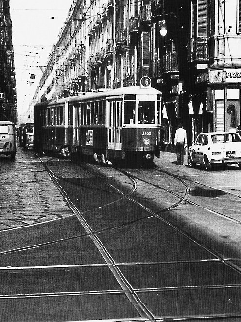 1935 circa – Via Napione (*), dal corso Regina Margherita prima dell’incrocio con la via Cesare Balbo. Da notare: i binari del tram per i due sensi di marcia; la Fiat 508A “Balilla” (prodotta dal 1932); lo stabile al n. 41 senza i balconi al primo piano (da notare i mensoloni di pietra a profilo più lineare di quello del secondo sovrastante); lo stabile al n. 39 a tre piani, sopraelevato di un piano negli anni Cinquanta (**). (*) Gian Francesco Galeani Napione conte di Cocconato (1748 –1830), noto anche come Giovanni Francesco Napione, è stato letterato e storico. (**) A proposito di sopraelevazioni: “Il primo concorso per il nuovo Piano Regolatore che doveva sosti¬tuire quello del 1908 e in regola con la legge urbanistica del 1942 venne bandito nel 1946 e adottato nel 1956 (***). Questi dieci anni, i cosiddetti anni della ricostruzione d’emergenza, interverranno sul tessuto cittadino già dilaniato dalla guerra, in maniera devastante e al di fuori di ogni controllo, con continue deroghe ai regolamenti vigenti. […] furono approvate 3130 concessioni per nuove edificazioni, 2756 con¬cessioni per sopraelevazioni e solo 367 per ricostruzioni […] “. Fonte: “4 - L'Italia del dopoguerra 1945-1960 - ATC Torino (atc.torino.it)”. (***) Approvato definitivamente nel 1959. ![]()