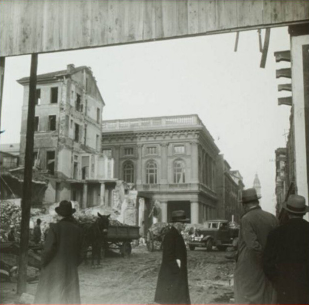 Ancora una foto della vecchia Roma nel primo tratto, all'angolo con via Principe Amedeo; interessante perchè fa risaltare bene il carattere popolaresco della vecchia via, con le tante botteghe e negozi (tutti coi loro tendoni parasole, la foto evidentemente è estiva); proprio quel carattere che,tra altre cose, il regime con l'abbattimento voleva cancellare